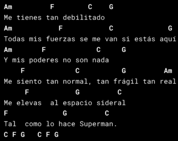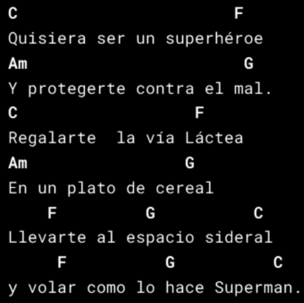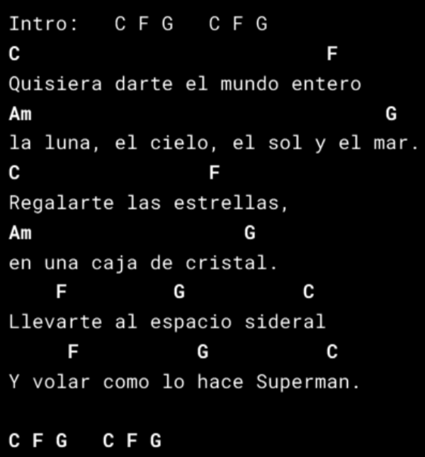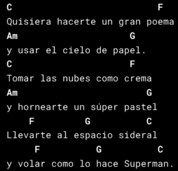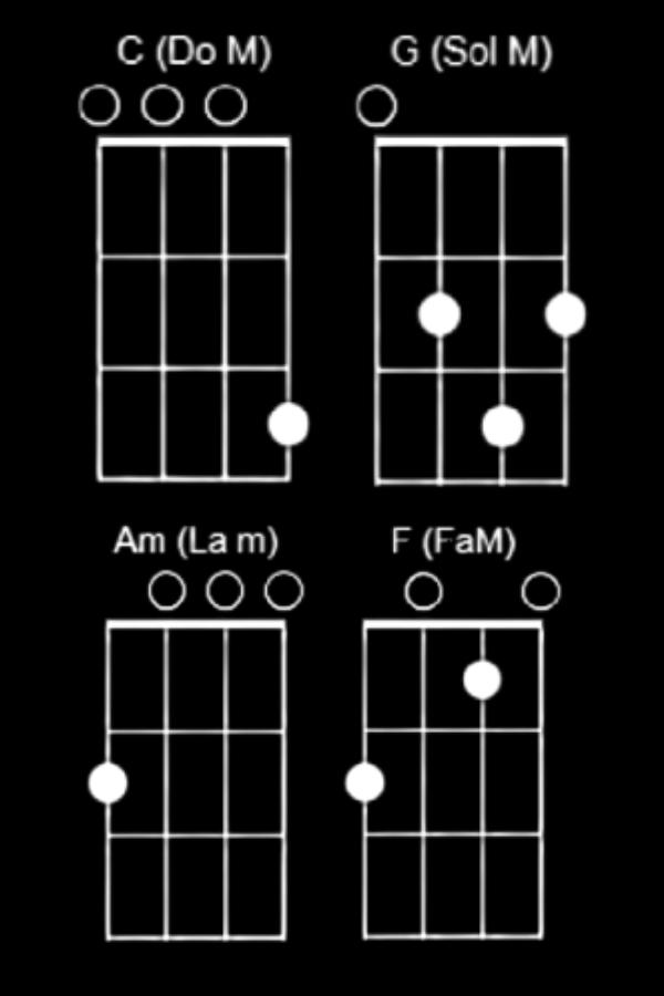 Necesitarás los siguientes acordes: C, G, Am, F